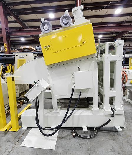 The Strilich Conventional Feed Line is engineered to handle substantial material loads with precision and efficiency. This used model offers a maximum stock width of 60 inches and accommodates stock thickness of up to .090 inches. It is capable of handling coil weights of up to 30,000 pounds, making it suitable for demanding industrial tasks. This unit includes a Rowe Coil Car with a capacity of 20,000 pounds, enhancing its operational capabilities. The feed line's dimensions are tailored to include specific components: the reel measures 108 inches in height, 62 inches in width, and 222 inches in length; the feeder stands at 68 inches high, 72 inches wide, and 84 inches long; the straightener is 97 inches in height, 93 inches in width, and 84 inches in length. With the distinct designations of Model 348 and Serial Number 9994, this equipment maintains a robust build for effective performance across various applications. It is a reliable choice for enterprises requiring durable and efficient feed line solutions.