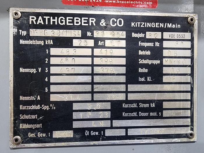 Rathgeber & Co DFBG 30/1USA 25 KVA Isolation Transformer