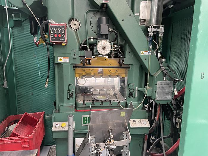 The 2014 BRUDERER Model BSTA 30V High Speed Press is a reliable and efficient piece of equipment ideal for high production environments. This straight side mechanical press, manufactured by BRUDERER, features the advanced BRUDERER controls, ensuring precision and consistent operation. With its model number BSTA 30V and serial number RU1438R, this unit remains in "as is, where is" condition, implying it will be sold in its current state, without modifications or guarantees. Manufactured in 2014, this used press represents a solid investment for any industrial setting requiring high-speed processing capabilities.